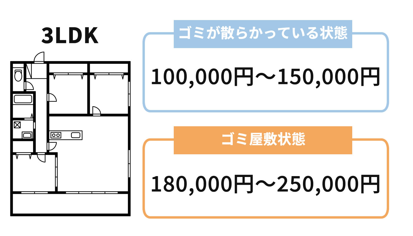 人によって不要品の物量や状況は違うので、あくまで参考例としてお考えください。